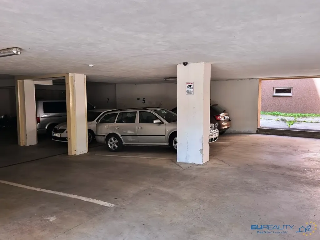 K bytu náleží sklep, společné prostory, kryté parkovací místo v suterénu domu.