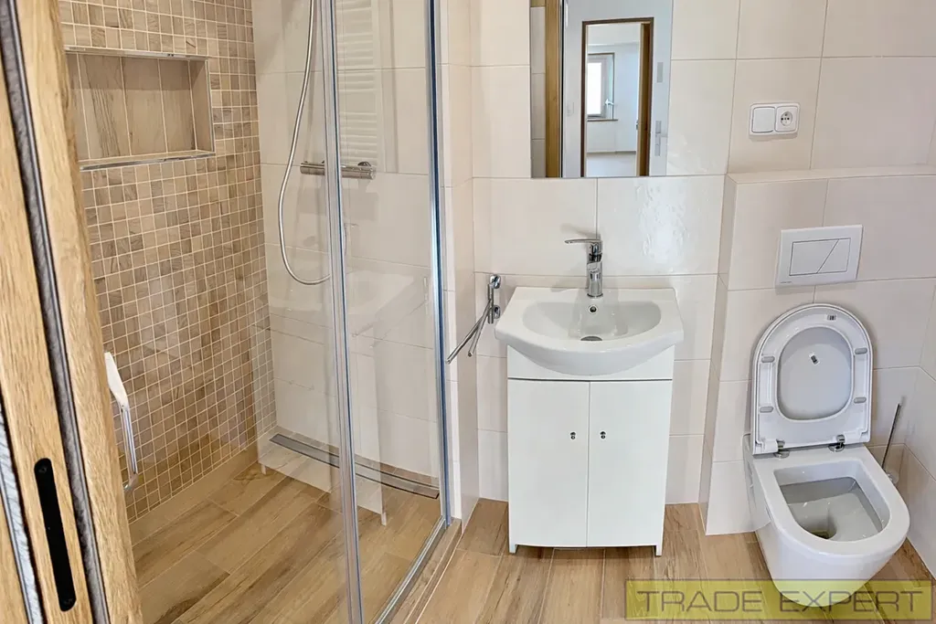 Prodej bytu 1+kk, 29 m2, Otmíče, okr. Beroun. Bytová jednotka se nachází ve 2. NP kompletně zrekonstruovaného bytového domu: Dispozice: Vstup do zádveří. Ze zádveří vstup do koupelny se sprchovým koutem a WC a do prostorného obývacího pokoje s kuchyňským koutem. Podlahy v obytné místnosti vinylové, zbytek keramická dlažba. Vytápění bytu a ohřev vody zajištuje tepelné čerpadlo Regulus. Byt je bez kuchyňské linky s možností dodání. Dům je napojen na vodovod, má vlastní čističku odpadních vod. Dešťová voda se po filtraci využívá ke splachování WC. Dům je kompletně zateplen s plastovými okny s trojsklem. Vedle domu je zpevněná plocha s bránou na DO. K bytu je na tomto dvoře vyhrazené parkovací stání. Dům je střežen kamerovým systémem. V obci se nachází Obecní úřad a restaurace. Další služby ve Zdicích, nebo Hořovicích. Nájezd na dálnici D5, 28 km je vzdálen 4 km od domu.