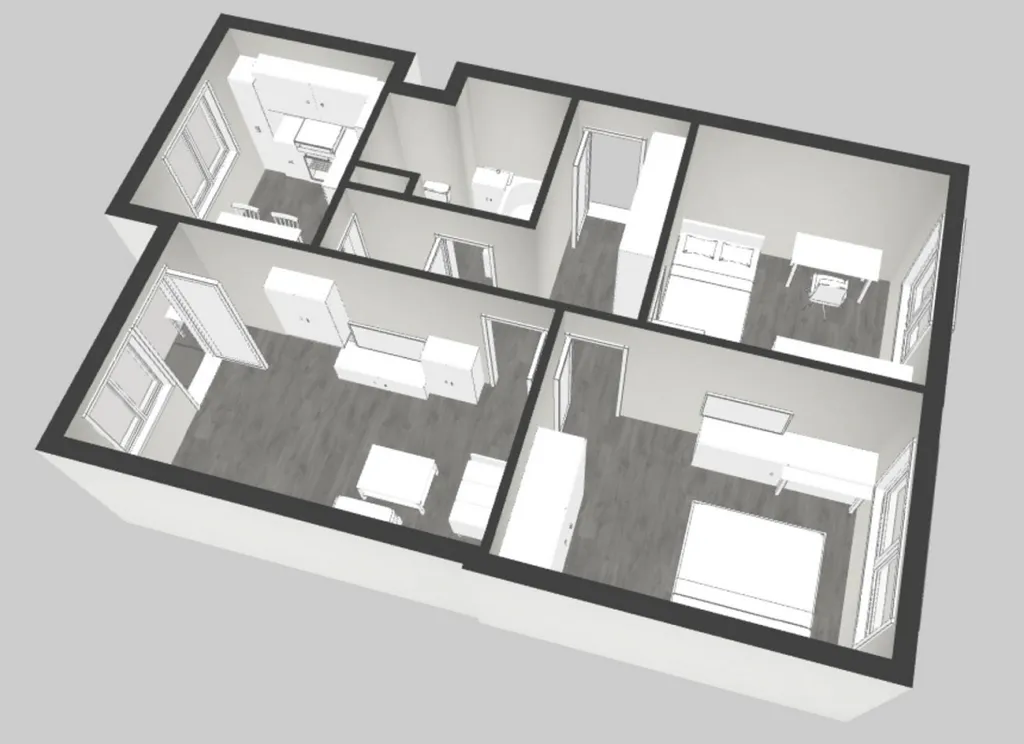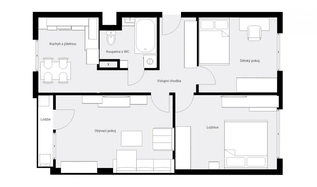Byt se nachází v 7. patře revitalizovaného panelového domu s výtahem. Nabízí krásný výhled na město a možnost sledovat východ i západ slunce. Dispozice bytu je následující: