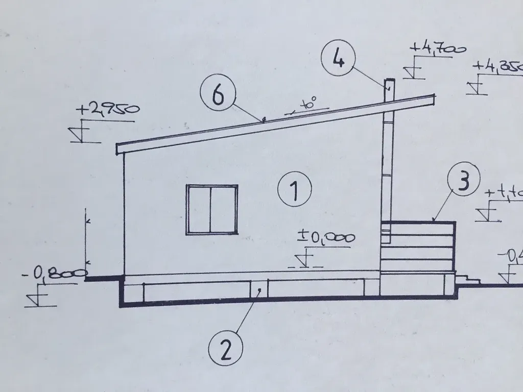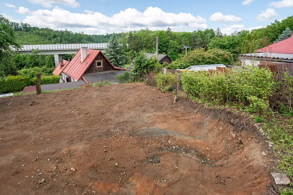 Na pozemku není aktuálně žádná stavba, ale součástí prodeje je projektová dokumentace a platné stavební povolení na výstavbu jednopodlažní rekreační chaty s pultovou střechou a zastřešenou verandou.