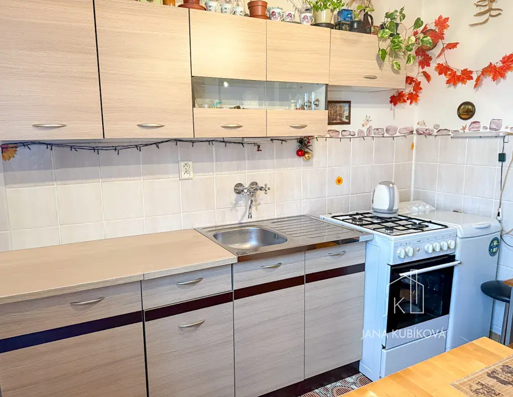 Dispozičně byt nabízí jeden prostorný obytný pokoj, který lze prakticky rozdělit na obývací a spací část. Kuchyň je vybavena kuchyňskou linkou a kamny. Koupelna je osazena vanou, umyvadlem a toaletou. V bytě se nachází vestavěná skříň, která poskytuje dostatek úložného prostoru.