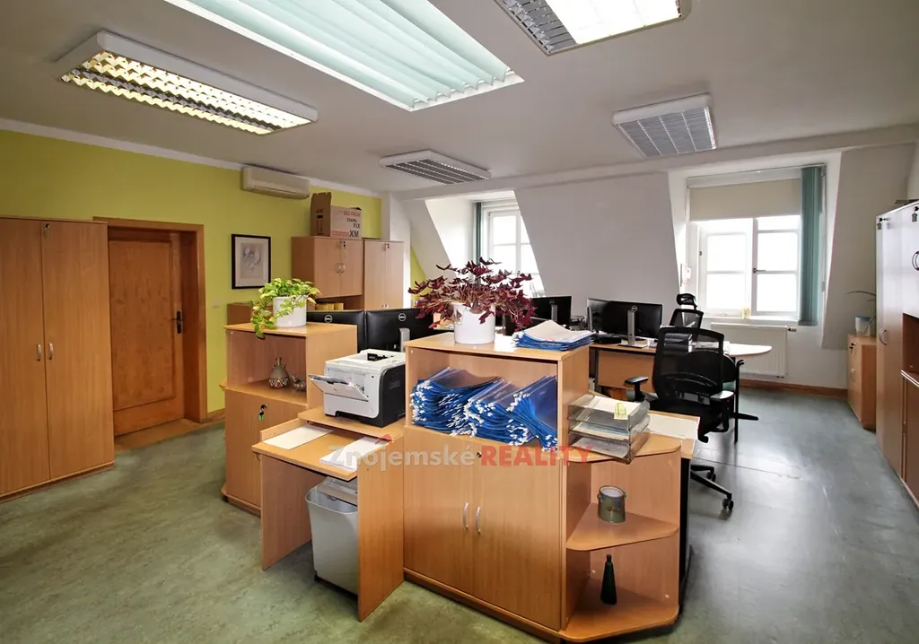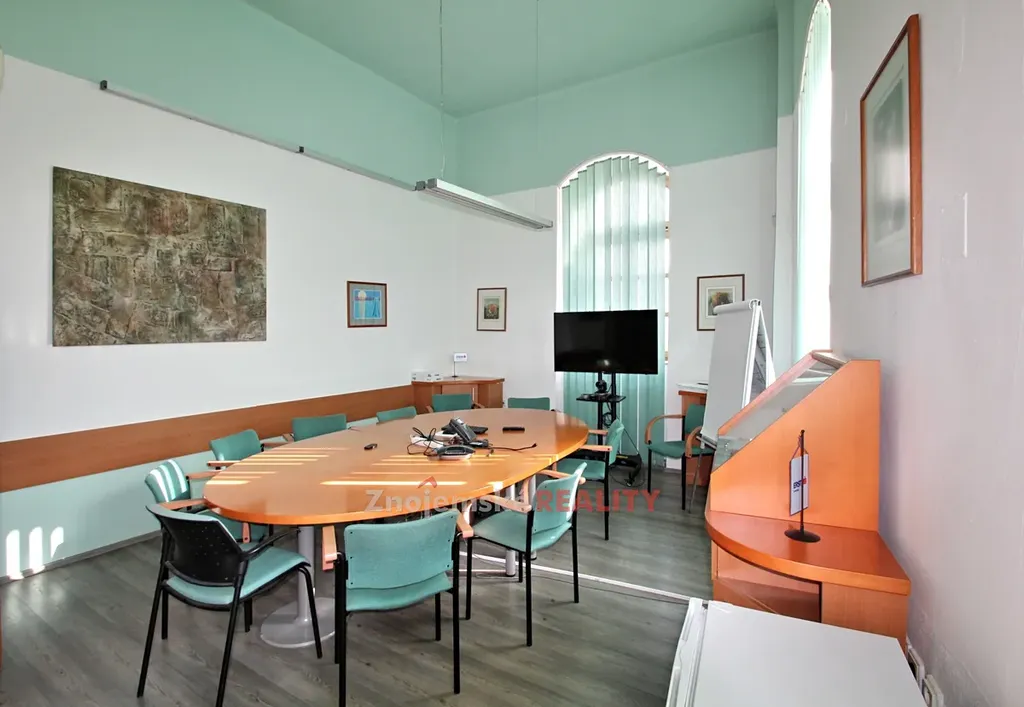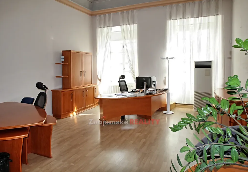 V centru města Znojma nabízíme k pronájmu historickou třípodlažní budovu. Dům je po kompletní rekonstukci a je koncipován jako komerční nemovitost administrativního charakteru. Dispozičně se budova skládá ze tří nadzemních podlaží a jednoho podzemního. V suterénu se nachází převážně skladové prostory, archiv a společenská místnost - vinný sklep. 1 NP zabírají zasedací místnosti, vstupní hala a kancelář. Ve 2NP je celkem 7 kanceláří a recepce. Ve 3NP je centrální hala ze které se vstupuje do 10ti kanceláří. Na každém podlaží se nachází zázemí s kuchyńkou a sociální zázemí. Přímo v budově je jedno parkovací místo, další parkovací místa jsou k dispozici v uzavřeném dvoře, vdáleném asi 100 m od budovy. Podrobnější informace žádejte v RK.