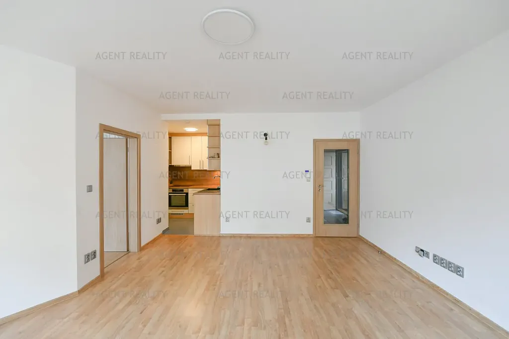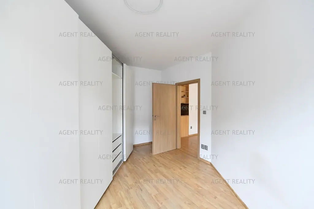 Byt se nacházá ve 2NP a je pronajímán nezařízený. Vstupní chodba a předsín, prostorný obývací pokoj s kuchyňským koutem vybaveným kvalitními spotřebiči (el. trouba, sklokeramická deska, kombinovaná lednice, mikrovlnná trouba).