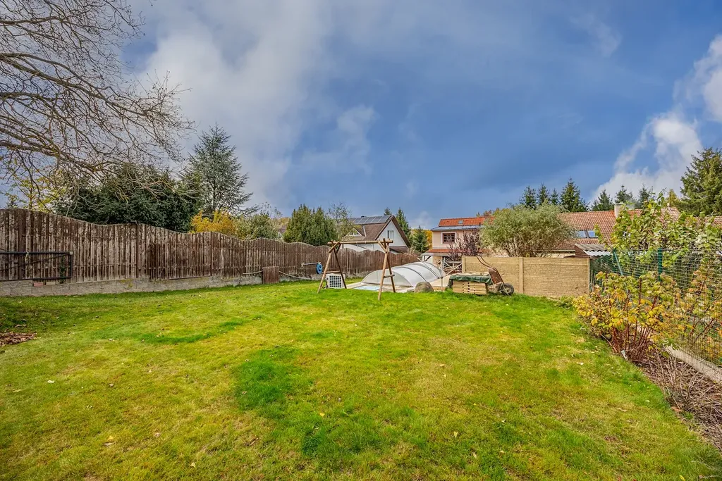 -Pozemek o výměře 774 m2 s bazénem a dětským hřištěm nabízí ideální místo mezi zahradou a soukromím