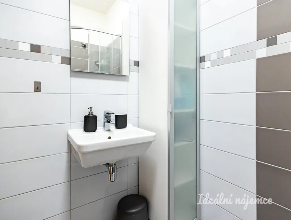 Skládá se ze vstupní chodby s velkou šatní skříní se vstupem do koupelny. Ta je vybavena sprchovým koutem, umyvadlem a toaletou.