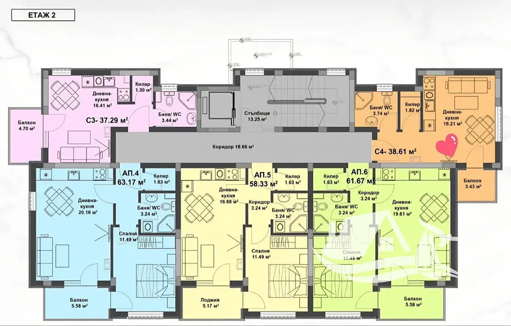 Apartmán 1+kk s celkovou plochou 38,6 m2 se nachází v 5. patře z pěti a díky své poloze nabízí příjemný kontakt s městem a jeho rytmem. Orientace do městské části dodává prostoru živost, zatímco promyšlené dispoziční řešení zajišťuje otevřenost a praktické využití každého metru.