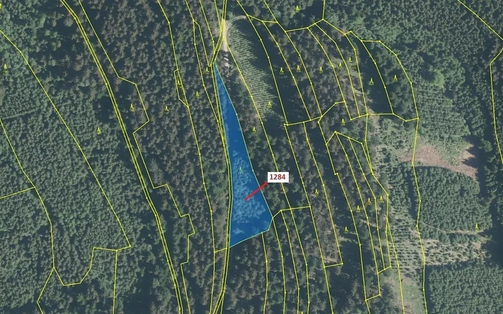 Lesní pozemek o výměře 3805 m2, parcelní číslo 1284, podíl 1/1, katastrální území Lačnov, obec Lačnov, obec s rozšířenou působností Vsetín, okres Vsetín, Zlínský kraj.