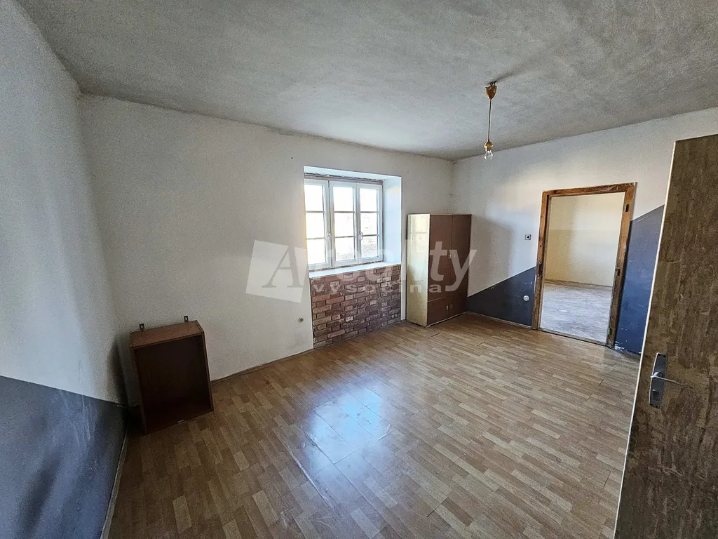 Přední obytná část je určena spíše k rekonstrukci. V obývacím pokoji a ložnici s orientací do ulice jsou plastová okna. Dominantou je velká kuchyň, která může sloužit i jako pokoj s kuchyňským koutem. Dále je zde možnost půdní vestavby. Do domu je přiveden obecní vodovod, aktuální vytápění zajišťují kamna, v případě potřeby je přímo ve zdi domu plynová přípojka. Přístup do dvora je umožněn vysokým krytým průjezdem, který lze využít i k parkování vozidla. K tomuto účelu slouží i vedlejší garáž, kam se za sebe vejdou dva osobní automobily. Na tuto část navazuje chlév/dílna.