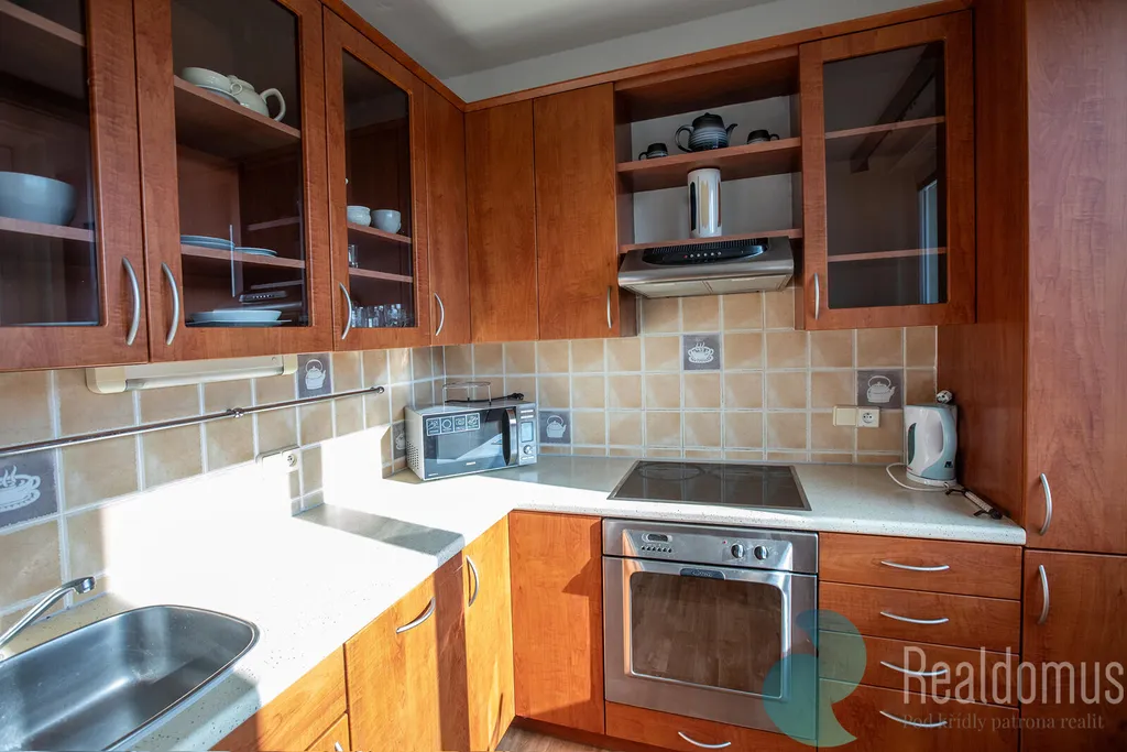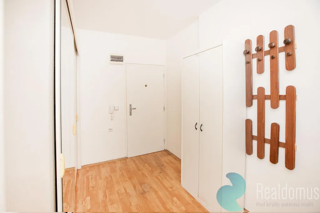 Byt disponuje prostornou vstupní místností, která je vybavena vestavnou skříní. Obývací pokoj má přístup na lodžii, která je orientována na východ a poskytuje příjemný výhled do okolí. Z chodbičky se vchází do útulné ložnice, kde opět naleznete vestavnou skříň, což oceníte při uskladňování osobních věcí. Kuchyň je prakticky zařízena a vybavena ledničkou, elektrickým sporákem, mikrovlnnou troubou a myčkou.