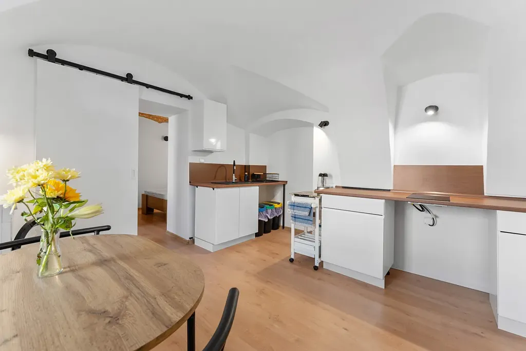 Byt prošel před 2 lety kompletní rekonstrukcí včetně elektroinstalace, koupelny i kuchyně, která zaujme moderním designem a kvalitním provedením. Byt se nabízí téměř zařízený. Dále byt disponuje moderními zašupovacími dveřmi ve všech místnostech. Voda je měřena podružným vodoměrem, samostatný elektroměr a plynoměr,