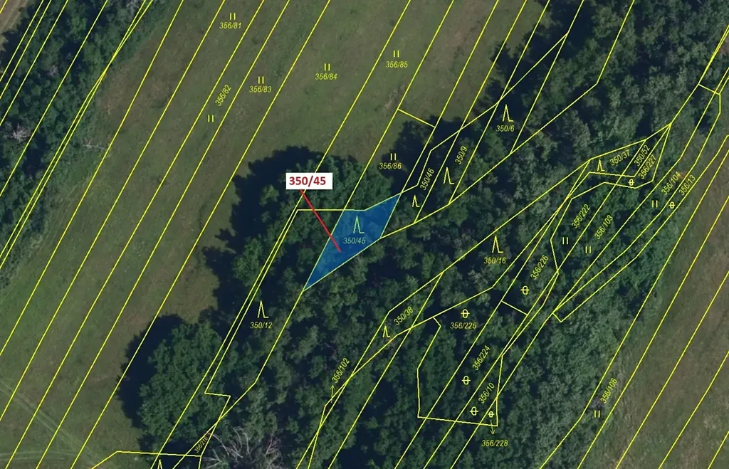 Lesní pozemek o výměře 183 m2, parcelní číslo 350/45, podíl 1/1, katastrální území Hrubšice, obec Ivančice, obec s rozšířenou působností Ivančice, okres Brno-venkov, Jihomoravský kraj.