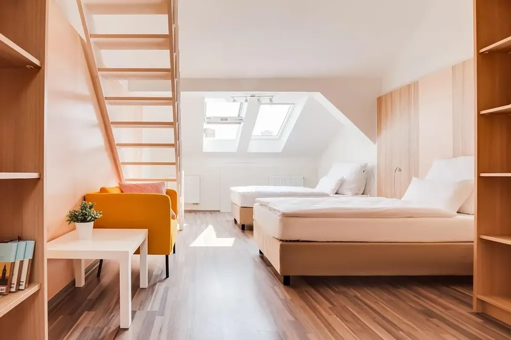 Byt o ploše 35 m2 se nachází ve čtvrtém patře.