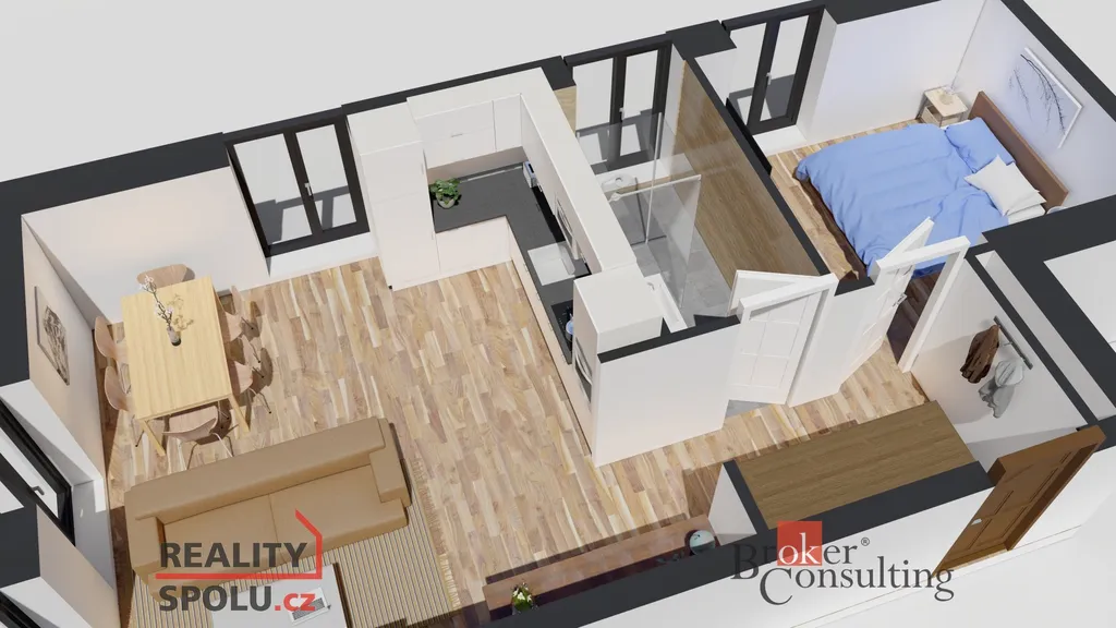 Nabízíme prodej bytu č.6 a dispozici 2+kk o výměře 47,53 m² ve 2. nadzemním podlaží Rezidence Důl Michal.