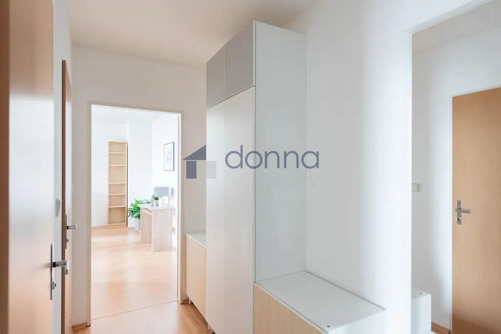 Nabízíme k pronájmu pěkný byt 2+kk, ploše 51m2 + 4x balkónek, ve 4. podlaží cihlového domu z roku 2003, bez výtahu, ulice Za Černým mostem, Praha 9 - Kyje.