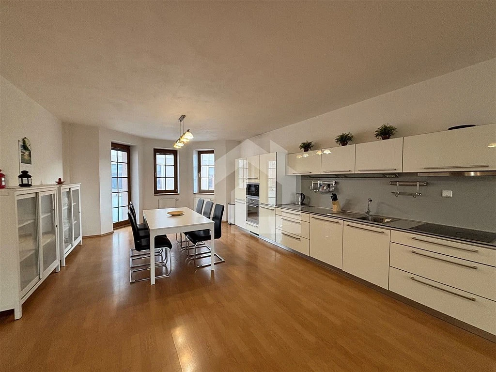 K pronájmu KOMPLETNĚ VYBAVENÝ BYT 3+kk (cca 120m²) se 3 BALKONY a PARKOVACÍM MÍSTEM  v uzavřeném dvoře.