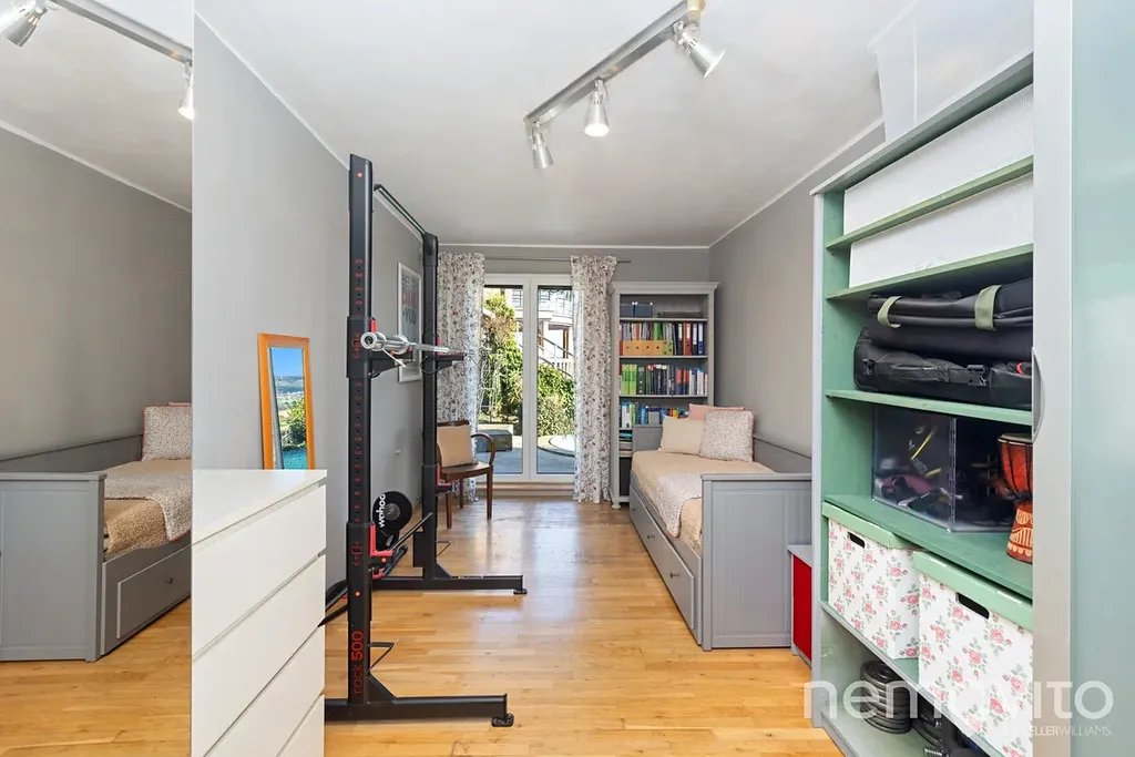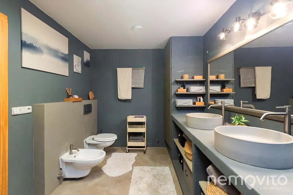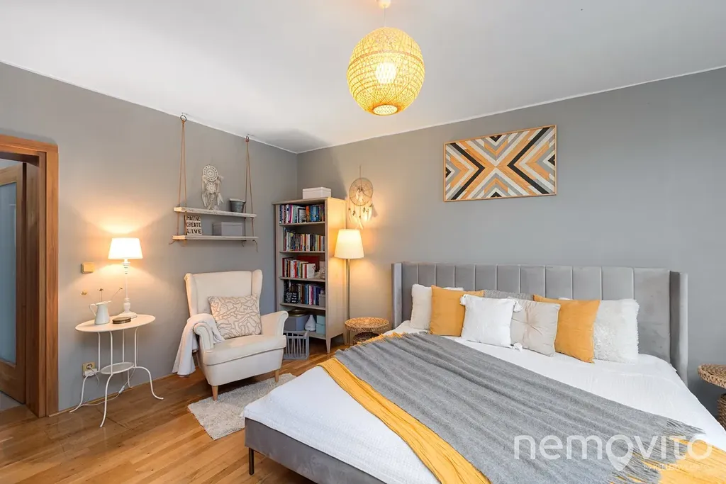 V bytě jsou celkem 4 ložnice o velikostech od 14 do 23 m2. K hlavní ložnici náleží výstup na pozemek (73 m2), kde je prostor na umístění vířivky nebo menšího bazénu - bezkonkurenčně nejhezčí výhled i v rámci vysokých měřítek tohoto bytu. Koupelny jsou dvě. Jedna se sprchou a místem pro prádelnu, druhá (11 m2) s obrovskou vanou. Nechybí ani samostatné WC, komora a místnost pro šatnu. Vytápění je zajištěno plynovým kotlem s kombinací podlahového topení a radiátorů. V jednom z pokojů je taktéž nainstalována klimatizace.