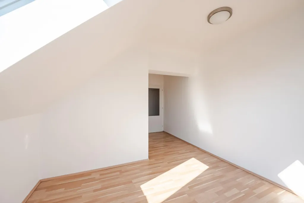 Pronájem hezkého světlého půdního bytu, částečně zařízeného o velikosti 1+1, 31m2 s výhledem do udržované zahrady.