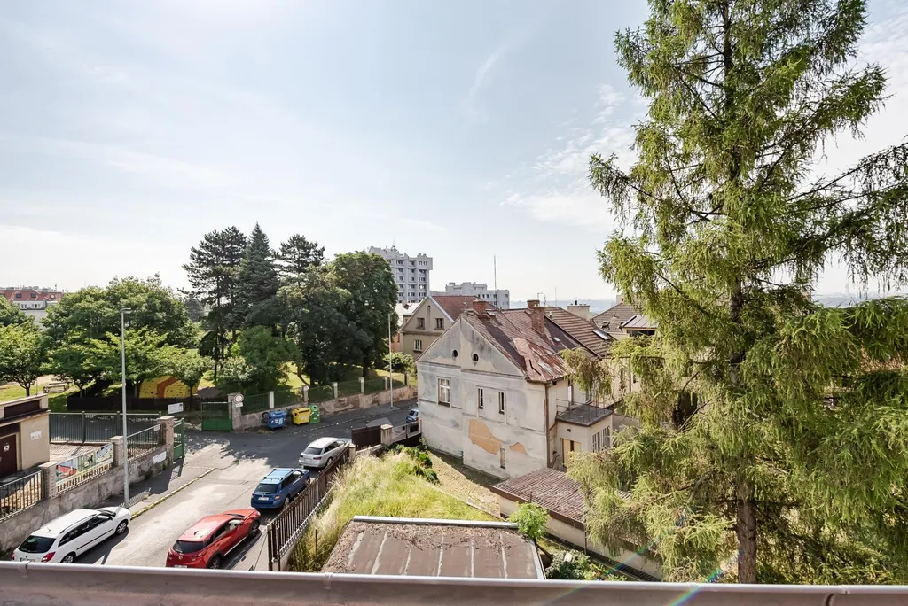 Byt se nachází v cihlovém domě zrekonstruovaném v roce 2014, bez výtahu, ve 3.patře. Kuchyňská linka je umístěna za příčkou, tím vzniká prostorná obytná část, která slouží jako ložnice a obývací pokoj. Lednice a pračka jsou k dispozici. Předsíň je prostorná i na šatní skříň. V koupelně je vana a toaleta. Vytápění plynovým kotlem. Byt je velmi klidný, vhodný pro jednu osobu. Zahrada je k užívání, k posezení u kávy.