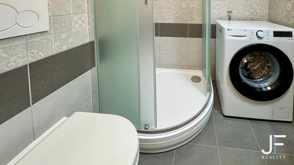 V koupelně se sprchovým koutem a elektrickým bojlerem je k dispozici mimo jiné pračka.