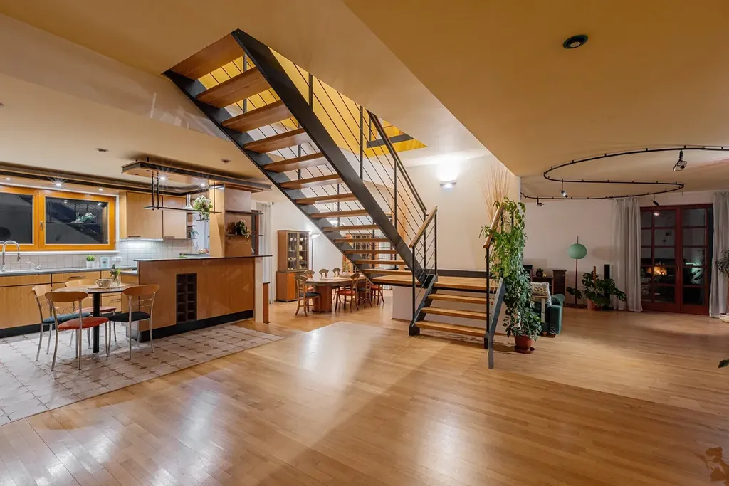 Jeho architektura byla inspirována rakouskými a americkými vlivy, kteří pozorní odhalí i v některých dalších detailech, jako je například shoz na prádlo. Stavba, která z ulice dokonale klame tělem, je opravdu rozlehlá. Včetně garáže ostřeluje metu 450 m2 a nabízí to, co u nových domů naleznete jenom stěží - plnohodnotný suterén, který má i svou obytnou část. Dvě plnohodnotná obytná podlaží, suterén, půda, garáž o ploše skoro 40 m2 a velké ložnice. Perfektní a okamžitě funkční základ pro vaše náročné potřeby, který si v průběhu let můžete doladit přesně podle sebe.