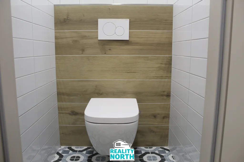 V koupelně a na WC je položena dlažba, v místnostech vinilová podlaha.