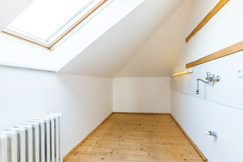 V podkroví se nyní nachází byt 1+kk 65m2, k tomuto bytu lze ale připojit ještě další nevyužívaná místnost o rozměru 26m2. Spojením byt tak byl byt, který měří 93m2 a jeho dispozice je možné využít jako 2kk nebo rozdělením 3kk.