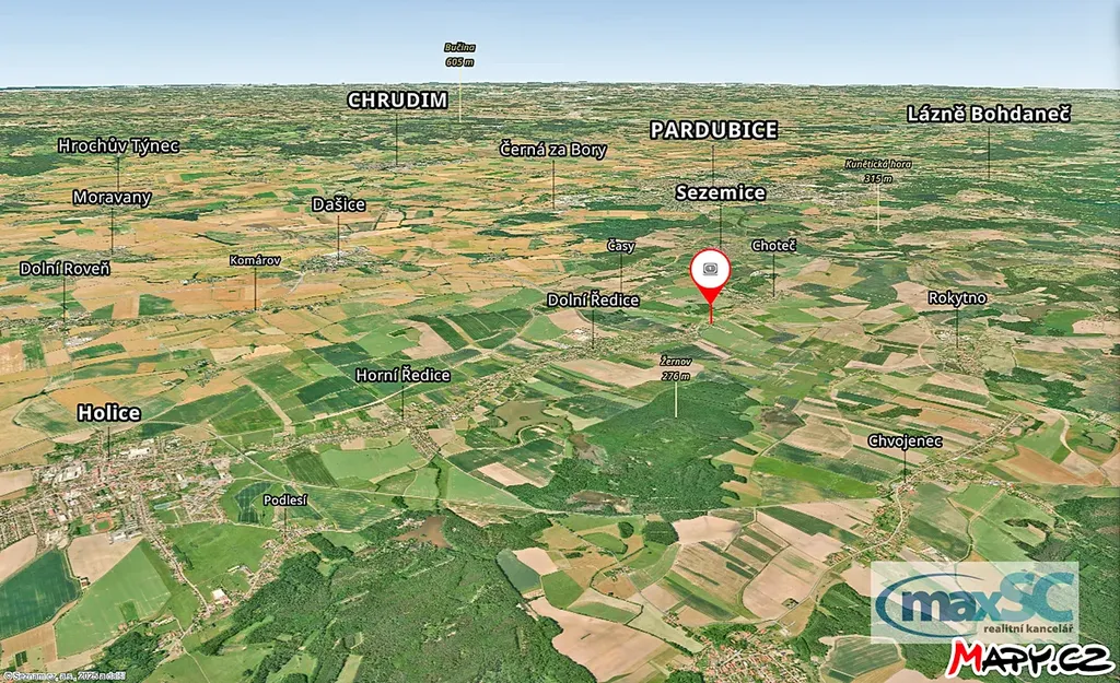 Domek se nachází na okraji obce. Dolní Ředice jsou rychle se rozvíjející obcí s ideální polohou. Leží mezi Sezemicemi a Dolními Ředicemi. Do Pardubic je to přibližně 9 km, do Hradec Králové 15 km. Spojení je pravidelnými autobusovými linkami, které obcí projíždí nebo klidně na kole po cyklostezce. Nájezd na D 35 je vzdálen pouhé 3 km, dojezdový čas do Prahy je tak do 50 minut..