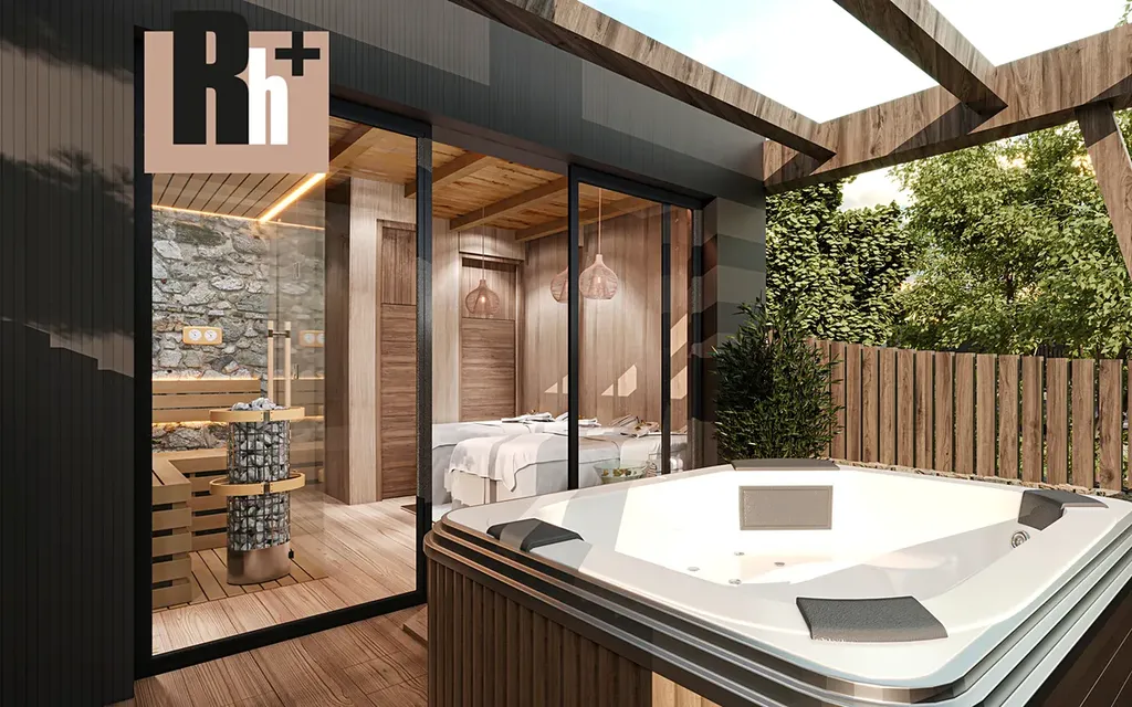 V podkroví je plánována relaxační zóna se saunou, sprchou a terasa s vířivkou.