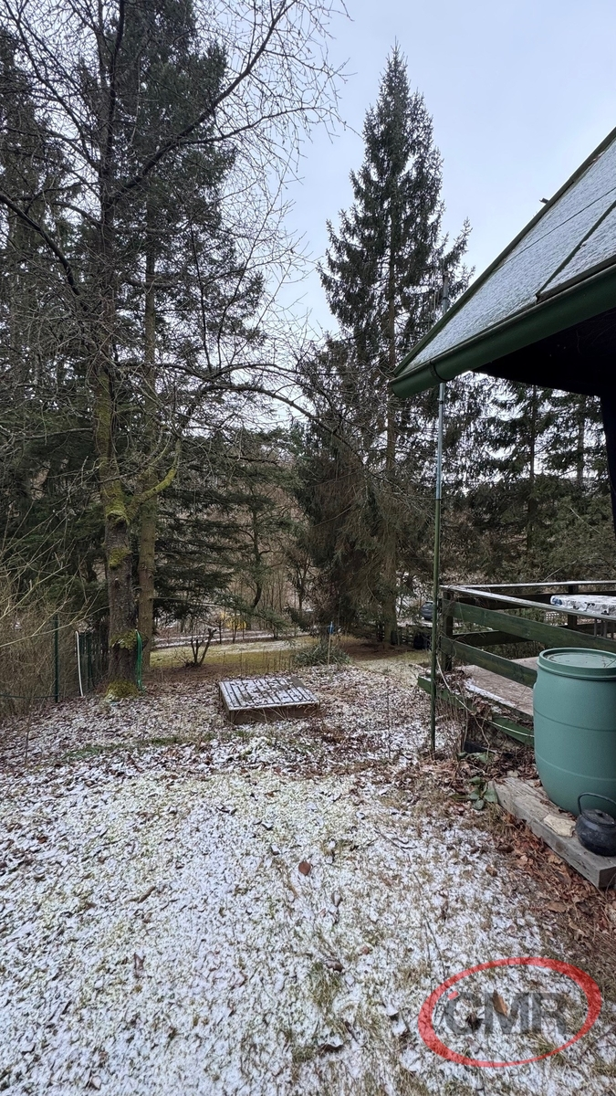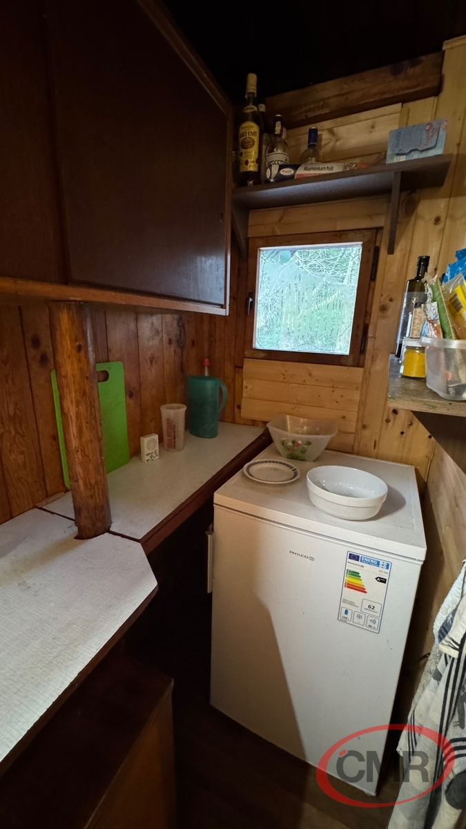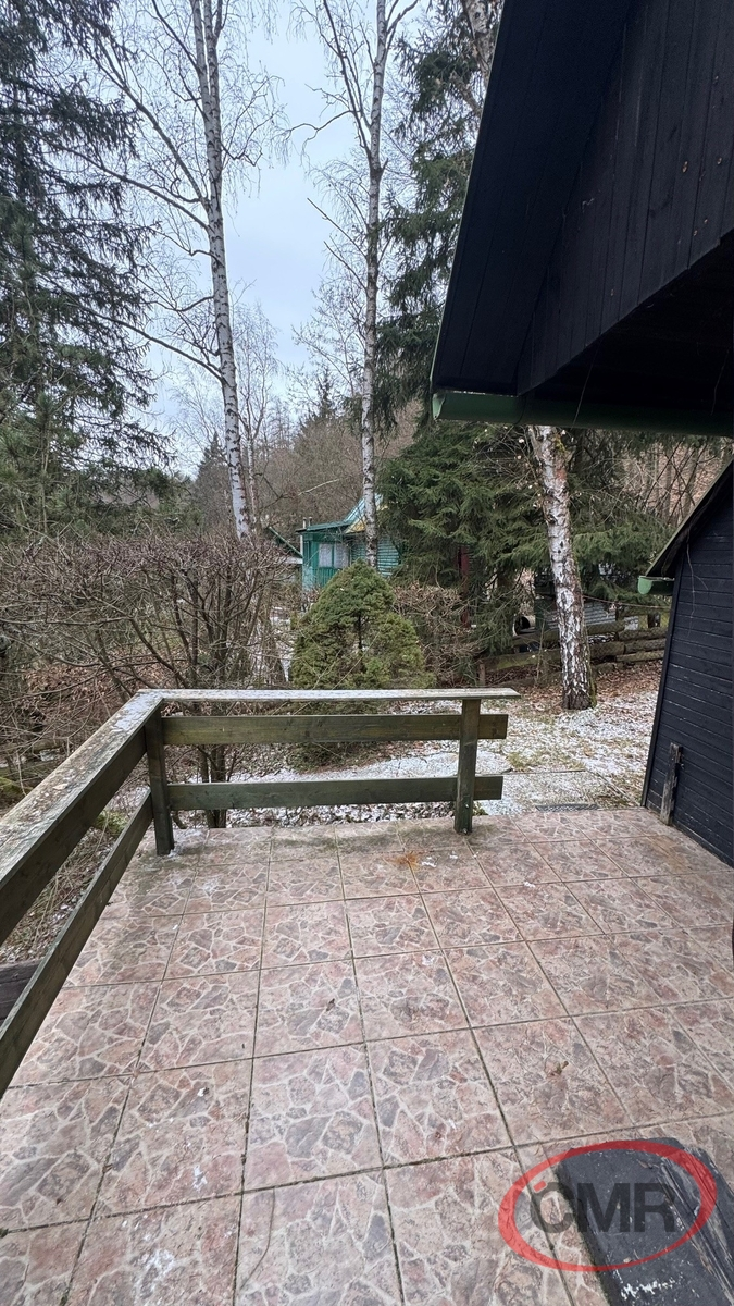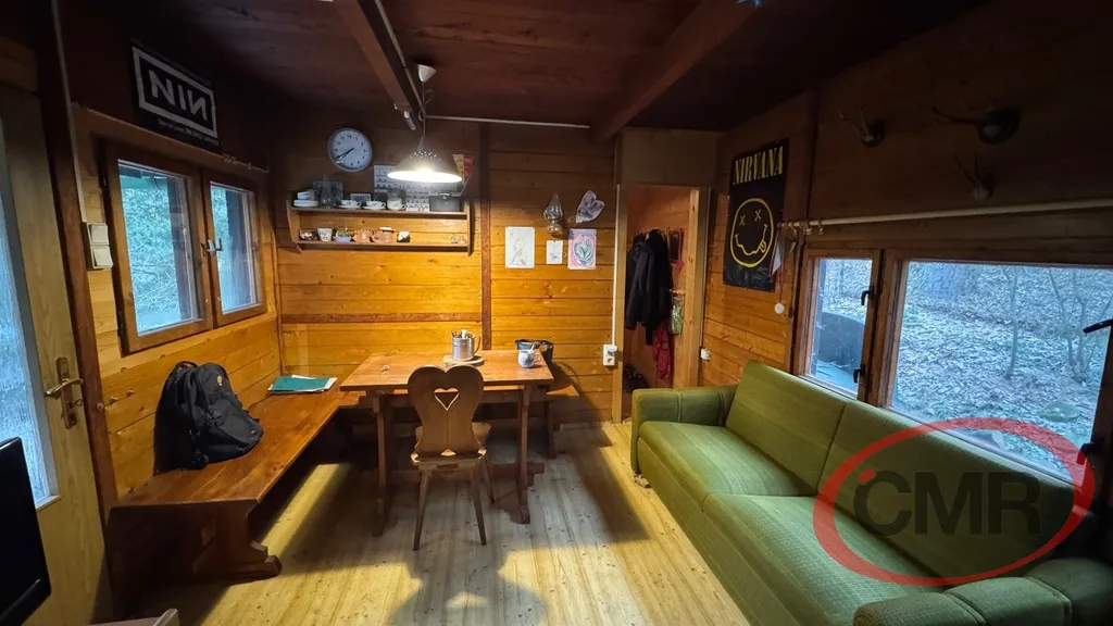 Typická rekreační chata o užitné ploše 38 m2 na vlastním pozemku o rozloze 440 m2 situovaná ve známé, vyhledávané rekreační oblasti Askelona, P-západ, Bratřínov. Chata má kamennou podezdívku, ve spodní části je garáž a další místnost využívaná jako skladovací prostor. V 1PP je prostorná obytná místnost , menší kuchyňka a koupelna, v podkroví je příjemná, také prostorná ložnice. Z obytné místnosti je vstup na pěknou, udržovanou terasu s výhledem na pozemek. Topení je zajištěno kamny, voda zavedena do chaty ze společné studny čerpadlem poháněným elektrocentrálou do cca 200 l sudu nad chatou, odkud jsou vedeny dva rozvody – do koupelny a kuchyně. Společná studna je bezproblémová, vody je stále dostatek i v suchých měsících, na pozemku je navíc předpřipraven "zárodek vrtu" pro případný vlastní zdroj vody. Odpad ze sprchového koutu a dřezu je řešen trativodem. El. 230 je řešena fotovoltaickým panelem s trakční baterií. Současně je instalován i 12 V světelný okruh jako záložní řešení. Osada není připojena k distribuční síti jde o tehdejší rozhodnutí osadníků, kteří chtěli zachovat tradiční trampský ráz celé osady. WC suché, možnost řešit chemickým. Pozemek je mírně svažitý, oplocený se vzrostlými stromy. Jedná se o pěkné, velmi klidné místo vhodné zejména pro rekreaci i když některé objekty v místě jsou již obývány celoročně. Chata se nachází mezi osadami Askelona a Dashwood u lesa. V místě je možnost sportovního vyžití, volejbal, nohejbal, tenis a v případě zájmu i další trampské aktivity. Příjezdová cesta vede až na pozemek. Dopravní spojení je možné busem z Bratřínova na Smíchov nebo vlakem do Čimelic ( Praha Hlavní nádraží, Vršovice... ). Vřele doporučuji prohlídku!