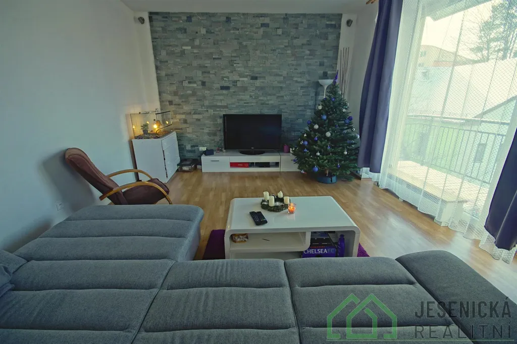 Realitní kancelář jesenická realitní nabízí v zastoupení majitele k pronájmu slunný, nově zrekonstruovaný zateplený byt 2 + KK + krytá lodžie o velikosti 74,01m2 (obývací pokoj s KK 36,11 m2, pokoj 10,61 m2, předsíň 9,73 m2, koupelna s WC se sprchovým koutem, bidetovým prkénkem a automatickou pračkou 4,76 m2 a krytá lodžie 12,80 m2) s orientací JZ do zahrady.