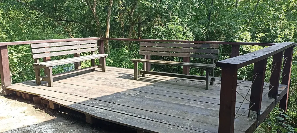 Před chatou se nachází zastřešená veranda a nová dřevěná terasa s krásným výhledem do okolních lesů – ideální místo pro klidné posezení, čtení nebo odpočinek.