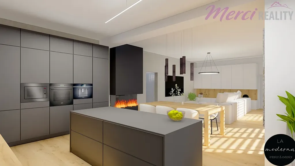 Hledáte nové nadstandardní bydlení v okolí Uherského Hradiště? Pokud nechcete dlouze čekat na koupě vhodného pozemku a řešit projekt se stavebním povolením, tak tu máme něco právě pro Vás. Nabízíme Vám hrubou stavbu rodinného domu s dispozicí 4+kk s terasou 50m2 ve městě Kunovice v ulici Na Samotě. Částečně podsklepený dům je postaven velmi kvalitně z betonových tvárnic. Z levé strany domu je vjezd do garáže, kde se také počítá s prostorem na vinný sklípek s posezením. Příjemné je také, že garáž má přístup schody přímo do domu. Kolem domu je postavený betonový plot, který čeká už jen na fasádní barvu a vstupní bránu na dálkové ovládání. Zastavěná plocha tohoto domu je 199,5 m2 + terasa 50m2. Vytápění domu bylo navrhnuto plynem, který je již přiveden přímo k domu. Samozřejmě je na novém majiteli jaké si zvolí vytápění. V obývacím pokoji se také počítalo nejen pro příjemnou atmosféru, ale i s náhradním vytápěním se spuštěným prostorovým krbem. Část střechy domu je téměř rovná a druhá část je střecha valbová. Střecha je pokryta trapézovým plechem o tloušťce 1,1mm. Kromě napojení domu na obecný vodovod, je také na předzahrádce k užívání studna. V přední části domu jsou dva pokoje umístěné naproti sobě pro absolutní soukromí. Z pokoje v pravé části domu se může vstoupit na dvůr z boční strany. Z druhého pokoje se zase vstupuje na menší terasu. Přes vstupní halu dále je chodba, koupelna s WC, technická místnost, prostorná kuchyň s jídelním koutem 38m2 a spolu s obývacím pokojem má dohromady 55m2. Z kuchyně a z obývací části domu je vstup na terasu a zahradu. Do ložnice 18,2 m2 se vchází také z obývacího pokoje a u ložnice je také připravený prostor na koupelnu s WC. Připravili jsme si pro Vás vizualizaci exteriéru i interiéru pro představu, jak by dům mohl po dokončení vypadat. Výhodou domu v hrubé stavbě je, že je ve stavu, kdy si můžete upravit, navrhnout a vybavit již vše dle Vašeho vkusu.