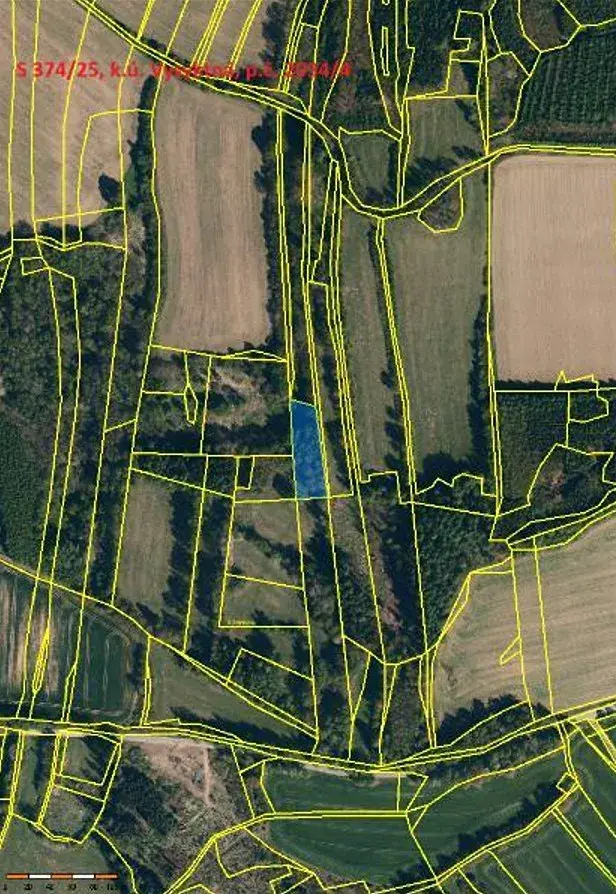 Jedná se o prodej lesního pozemku menší výměry, který je obklopený zemědělskými a lesními pozemky jiných vlastníků. Má výměru 2174 m2, na části pozemku se nachází listnatý porost (BR), na části je bezlesí zarostlé keři.