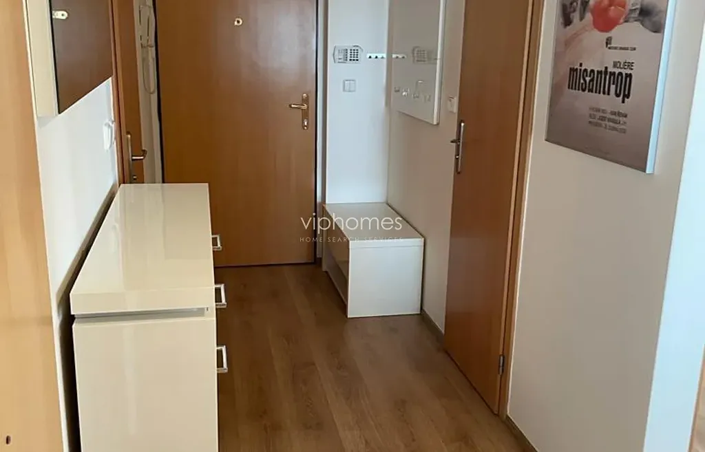 Byt se nabízí kompletně zařízený a sestává z předsíně, obývacího pokoje s plně zařízeným kuchyňským koutem, 2 ložnic, koupelny s vanou a WC, komory. Z obývacího pokoje je vstup na terasu. Plynové topení (samostatné měření spotřeby tepla, vody a elektřiny), bezpečnostní dveře, parkety, domácí telefon s ovládáním domovních dveří, přenos videosignálu od vstupů do budovy na obrazovku TV. Služby :recepce, video sledování od vstupů do budovy na obrazovku TV.