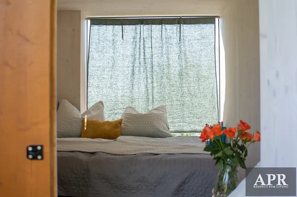 Domek je novostavba s promyšleným interiérem, kvalitním zpracováním a plně vybavený – včetně manželské postele, nábytku, nádobí, solární sprchy či 12V rychlovarné konvice. Elektřinu zajišťuje solární panel s baterií, vytápění plynová kamna s dvouplášťovým komínem na PB. Toaleta je řešena ekologicky. Vše je součástí kupní ceny.