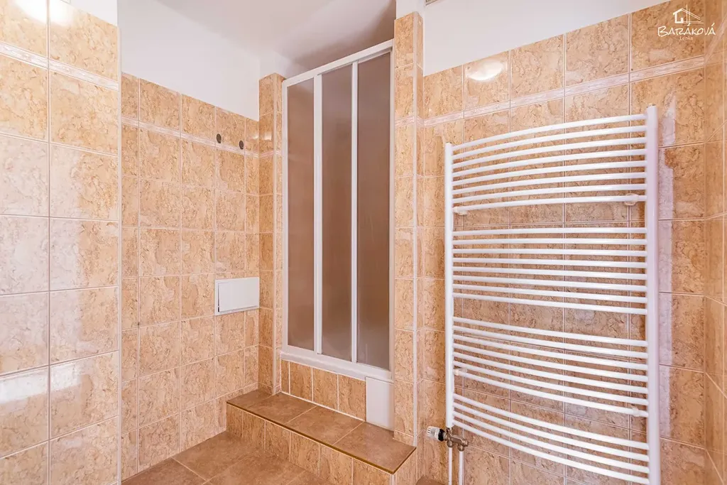 Byt má plastová okna, elektřinu v mědi a v obývacím pokoji najdete původní parkety ve velmi dobrém stavu. Dispozice je praktická – z prostorné chodby vedou vstupy do neprůchozích pokojů, velké koupelny se sprchovým koutem, samostatné toalety a kuchyně.