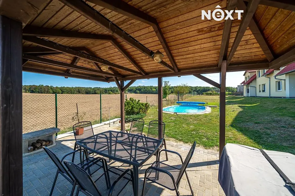 Velkou přidanou hodnotou je oplocená zahrada s bazénem a venkovním posezením – ideální místo pro relax nebo rodinná setkání. K dispozici je také kolárna. Dům stojí na okraji obce, v klidné části u polí a nedaleko lesa. Sousedské prostředí je přátelské a bezproblémové.