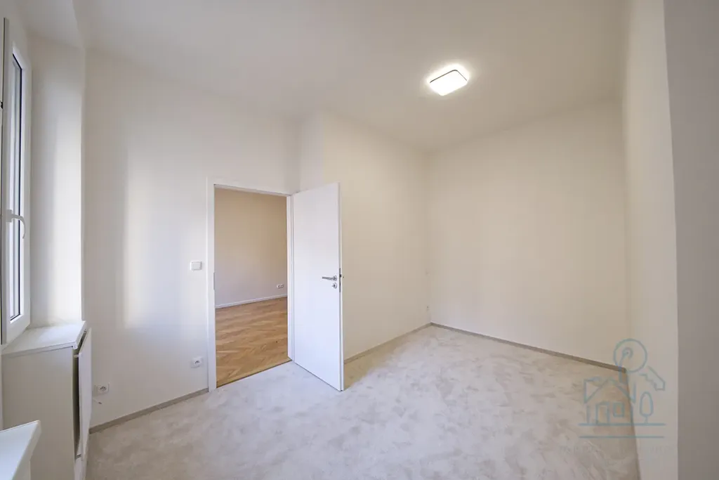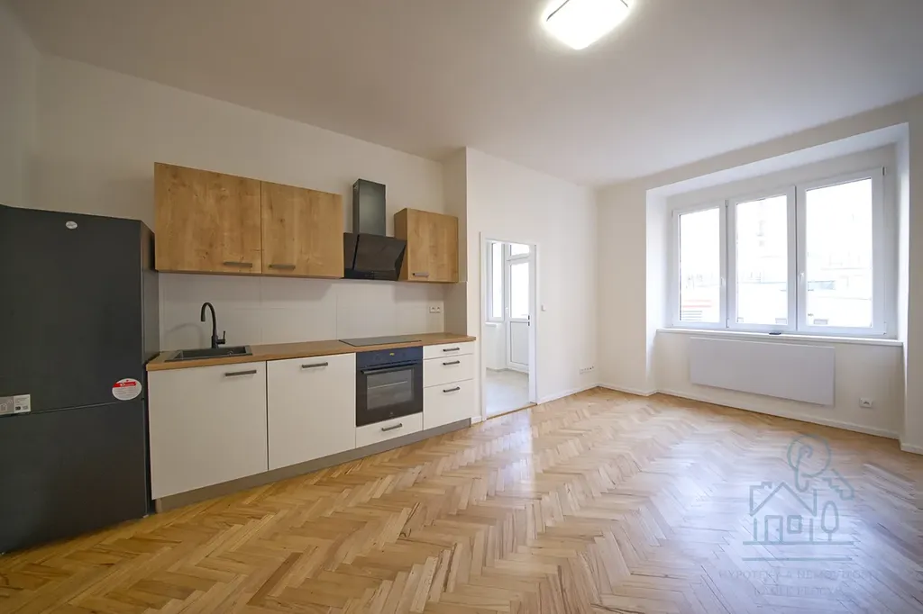 Byt je připraven pro prvního nájemce po kompletní nadstandardní rekonstrukci a disponuje dispozicí 2+KK a předsíní, koupelnou se sprchovým koutem, obývacím pokojem s moderní kuchyňskou linkou vybavenou vestavěnými spotřebiči a samostatnou ložnicí, ze které vede balkónek s výhledem do klidného dvora.