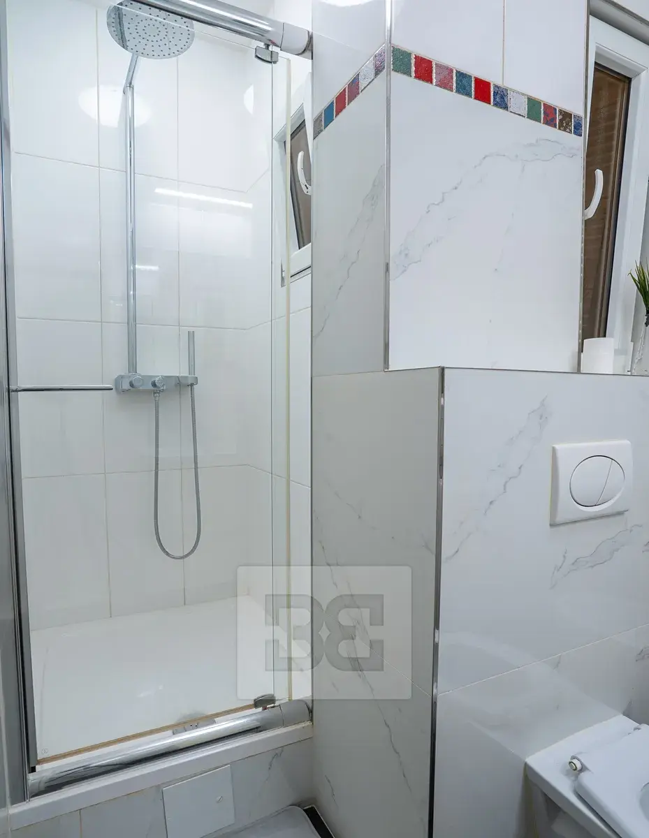 V koupelně se nachází sprchový kout, toaleta, bidet a pračka.