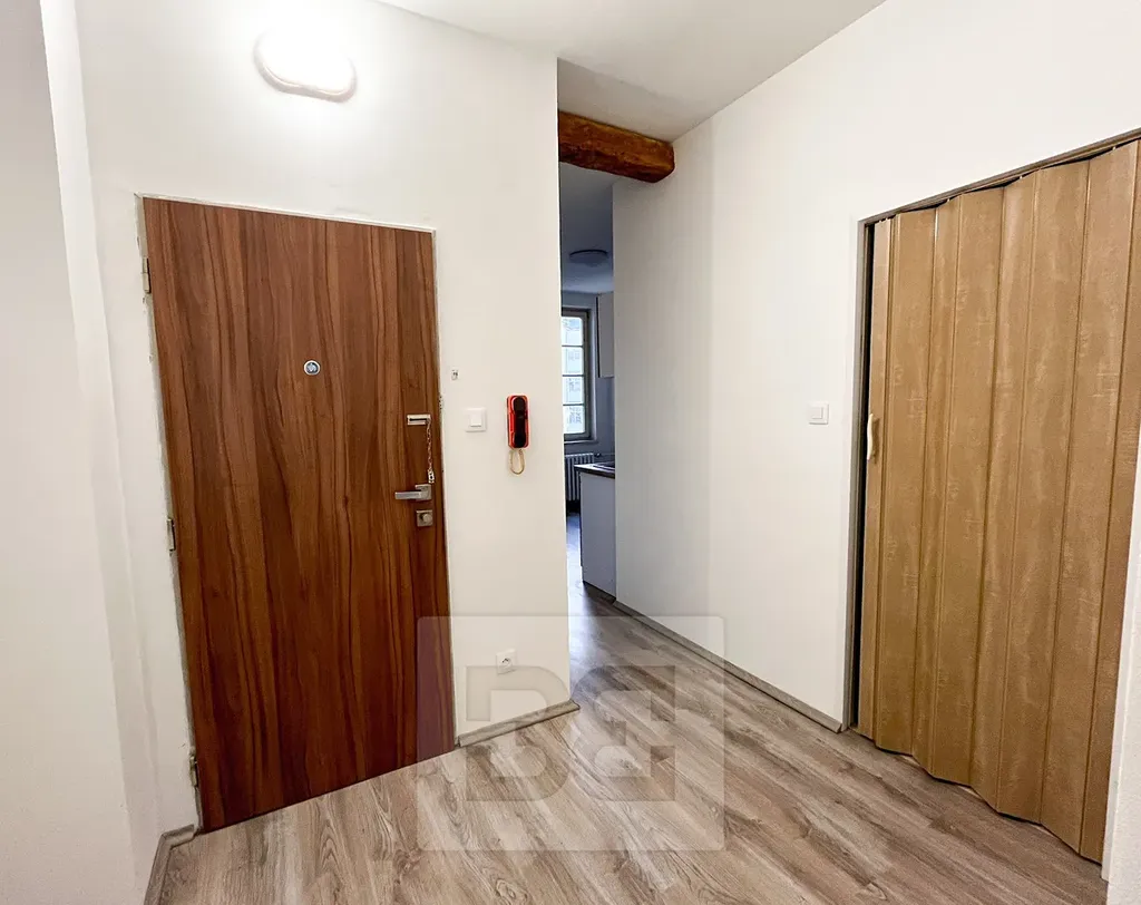 Byt se skládá z prostrorné předsíně, z níž vedou dveře do hlavní ložnice s vyvýšeným patrem na spaní nebo relaxaci. Zaujmou Vás vysoké strpy a velká, špaletová okna díky kterým prostor krásně světlý.