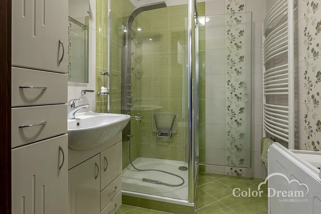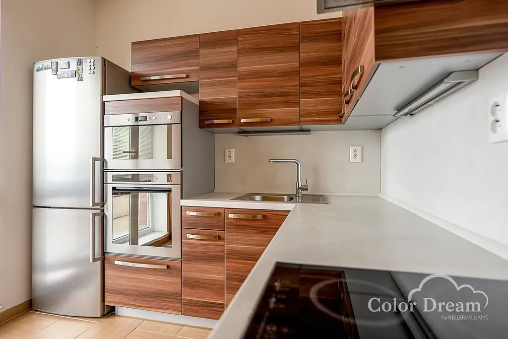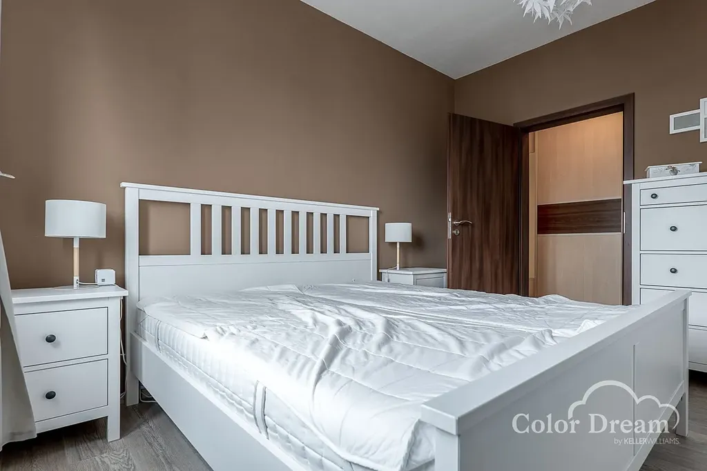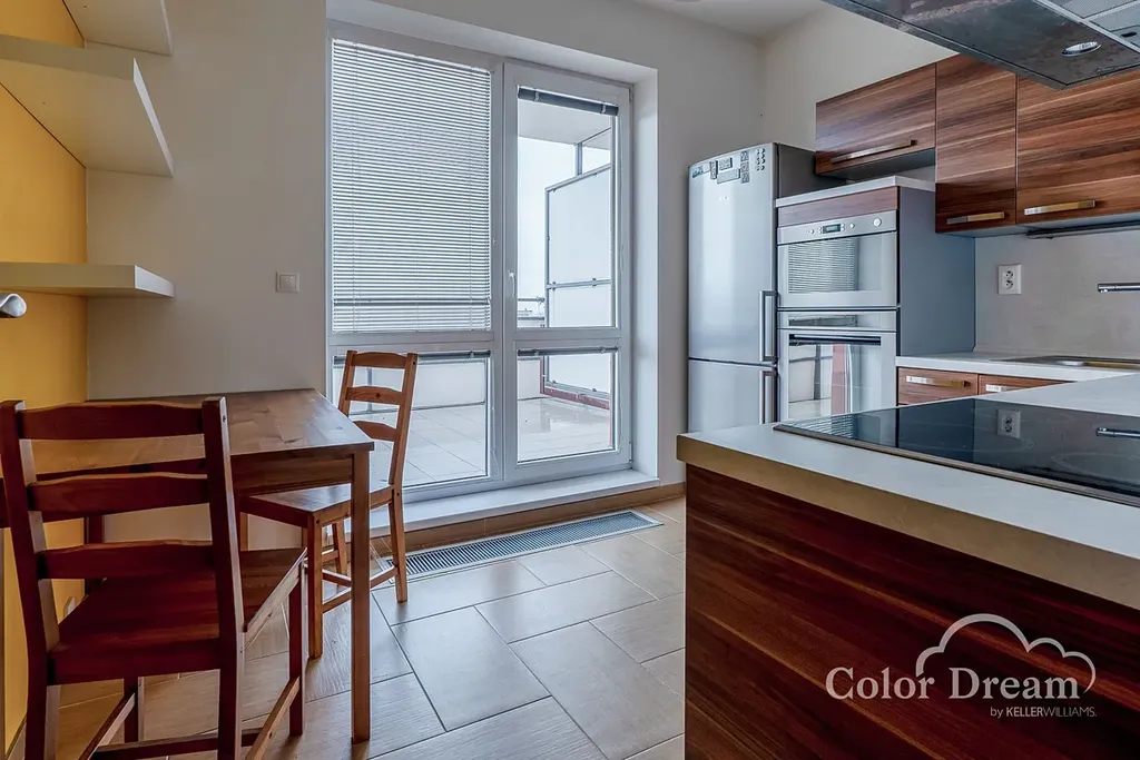 K dispozici je prostorná vstupní chodba s vestavěnými skříněmi, obývací pokoj, kuchyně včetně kuchyňské linky a spotřebičů a vstupem na velkou lodžii, ložnice se vstupem na malou lodžii, dětský pokoj, vybavená koupelna se sprchovým koutem a samostatné WC.