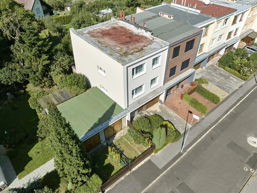 Nabízíme k prodeji krajní řadový rodinný dům v ulici Marie Majerové v Teplicích. Dům je v udržovaném stavu a může sloužit k bydlení bez dalších investic a nebo mohou budoucí majitelé rekonstrukcí docílit moderního bydlení ve velmi klidné a vyhledávané lokalitě, navíc ve slepé ulici s minimem provozu.V přízemí domu se nachází zádveří, schodiště, tři technické místnosti a malý sklep. V 1. patře naleznete kuchyň s jídelnou, toaletu a obývací pokoj se vstupem na balkon. Ve 2. patře jsou tři ložnice, dvě z nich se vstupem na balkon a koupelna. K domu patří garáž, umístěná hned u domu. Zahrada má celkem 312 m2 a jsou na ní vzrostlé stromy. Pro svoji polohu v rámci města, skvěle dostupnou veškerou občanskou vybavenost tuto nemovitost vřele doporučujeme.