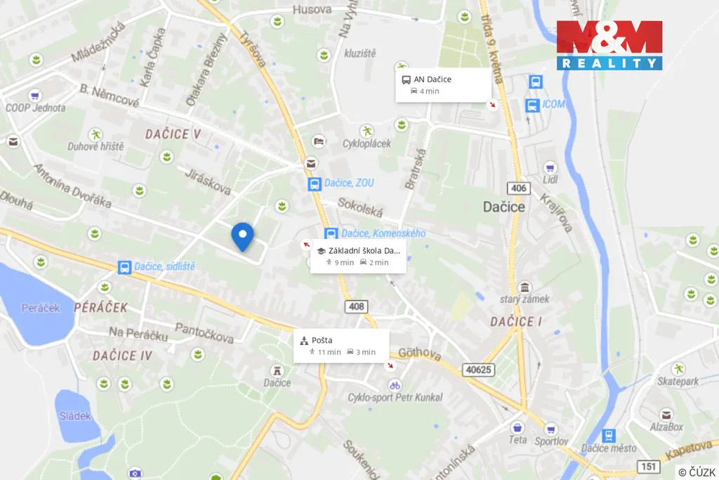Byt právě prošel rekonstrukcí – nové bytové jádro, koupelna se sprchovým koutem, okna s izolačními trojskly, vinylové podlahy, topení, kuchyň, elektrické rozvody a osvětlení. K bytu náleží sklep a balkon s výhledem do zeleně a na Dačický zámek. Klidná lokalita s veškerou občanskou vybaveností v pěší vzdálenosti do centra města. Uvedené nájemné bez záloh na energie. Majitel požaduje kauci ve výši 20 000,- Kč.