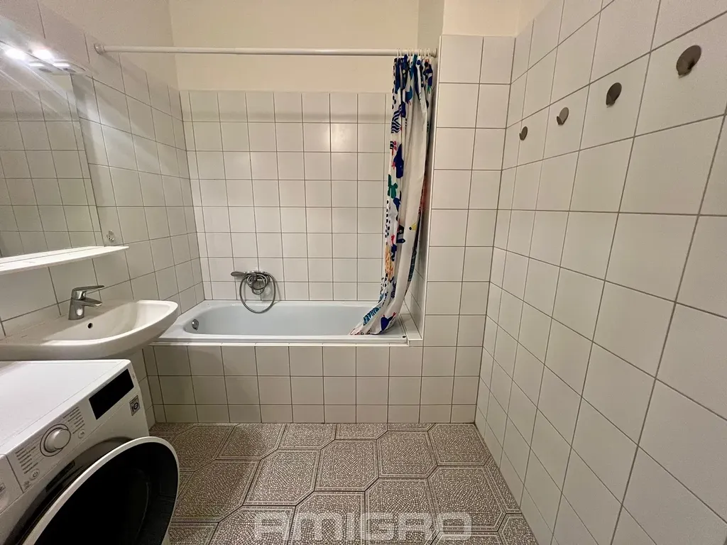 V bytě je kuchyňská linka, kombinovaný sporák a lednice s mrazákem, v koupelně je pračka.