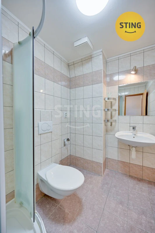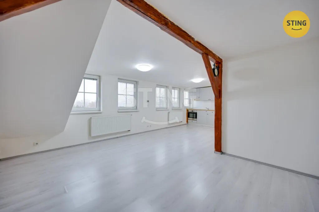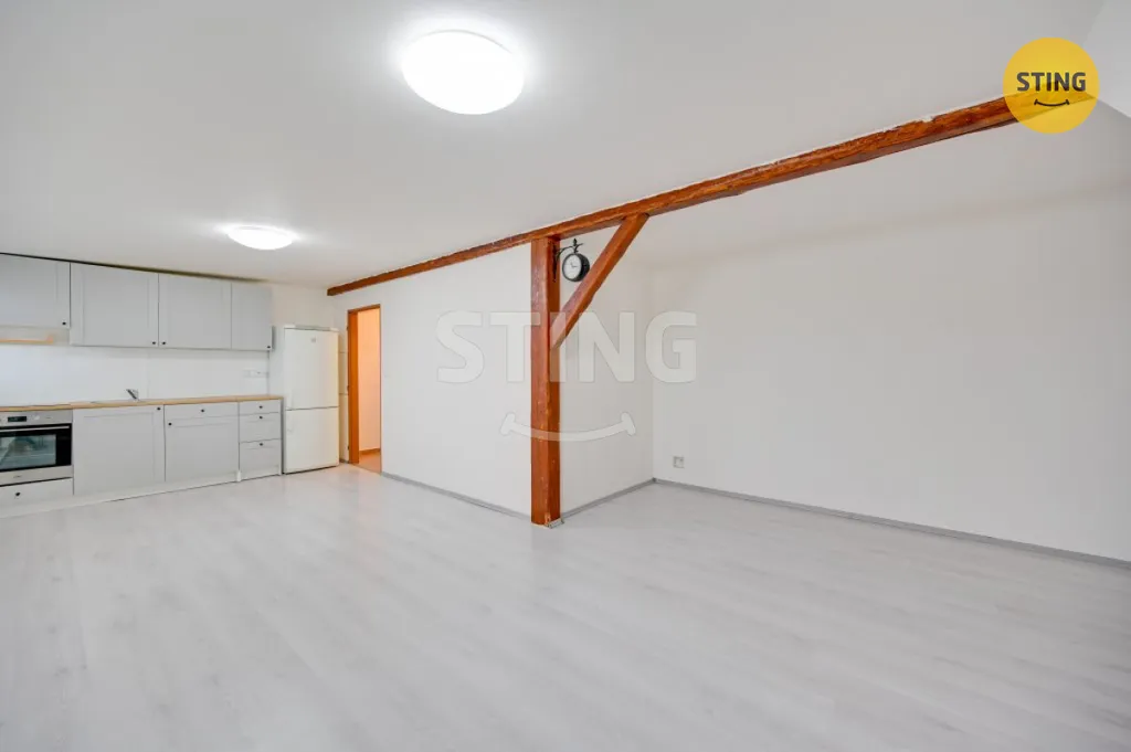 Dominantou bytu je obytný prostor s vkusnou kuchyňskou linkou, kde jsou přiznané dřevěné trámy, které dodávají interiéru jedinečný charakter a útulnou atmosféru. Koupelna je vybavena sprchovým koutem a závěsným WC Geberit, k dispozici je také přípojka na pračku. Na chodbě se nachází závěsný plynový kotel, který zajišťuje vytápění i ohřev teplé vody. Okna bytu jsou osazena novými žaluziemi, které zajišťují dostatek soukromí a komfort.