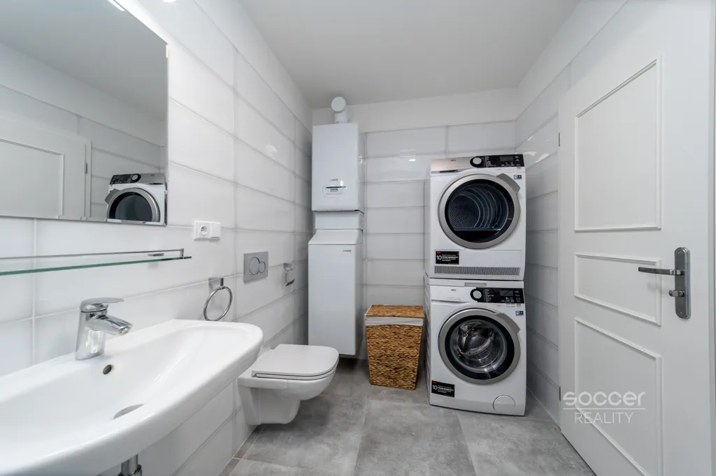 Celá nemovitost je po velmi zdařilé a vkusné rekonstrukci, zachovává vzácné původní prvky, důraz je kladen na celkovou souhru s jedinečnými designovými detaily. Samotný byt je plně zařízený a nabídne vám velký obývací pokoj s vybaveným kuchyňským koutem a krbovými kamny. Další pokoj je neprůchozí a budete z něho mít výhled do udržované zahrady, stejně jako z ložnice s velkým francouzským oknem. Dvě prostorné koupelny vám umožní volbu mezi sprchovým koutem a vanou. Interiér je světlý a vzdušný a budete mít navíc možnost pobývat v soukromí zahrady náležející k vile.