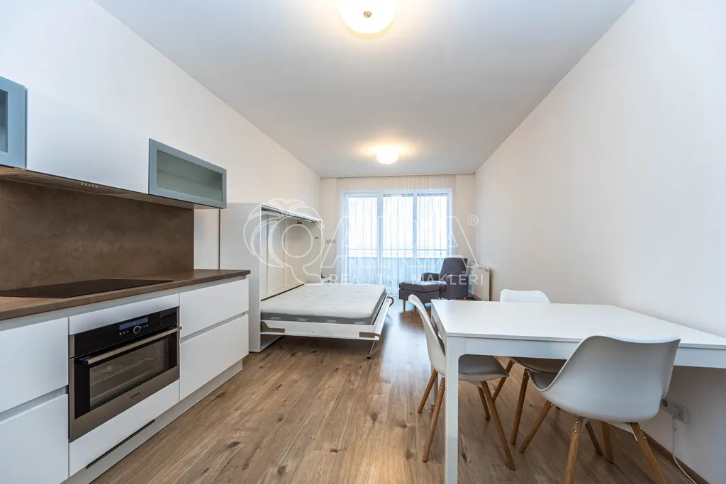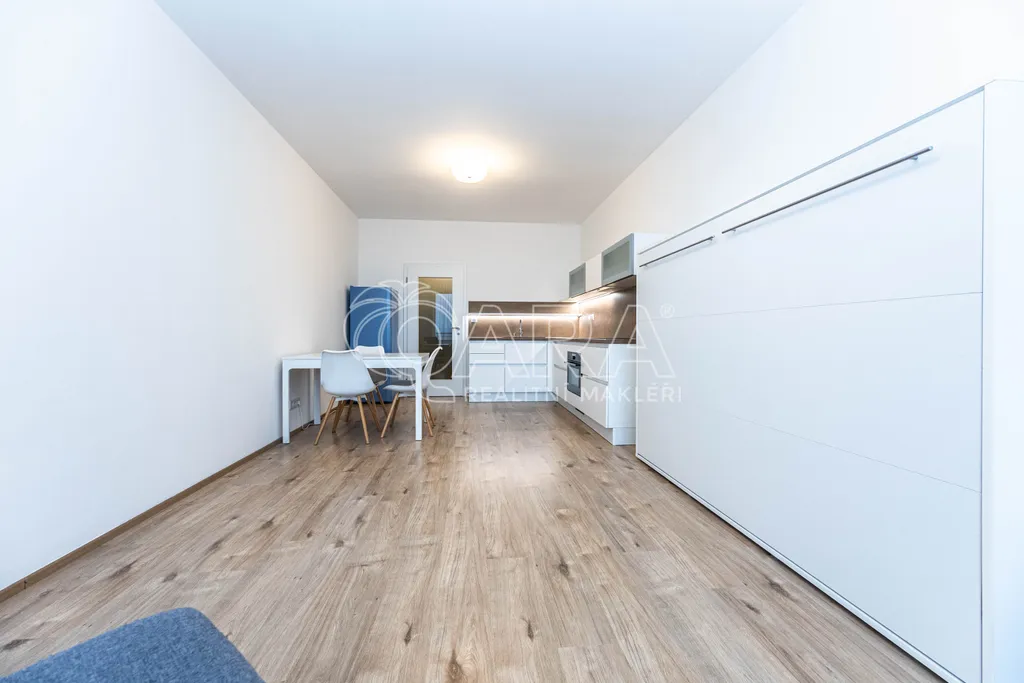 Nabízím Vám k pronájmu zařízený byt o dispozici 1+kk v 3. nadzemním podlaží bytového domu z roku 2019. Byt je v perfektním stavu, minimálně používaný, zařízený minimalisticky a vkusně. Dominantnou obývacího prostoru je kuchyňská linka ve tvaru L, která je laděna do čistých a světlých tónů. Byt je vybaven praktickou vyklápěcí postelí a toto řešení zajišťuje dostatek životního prostoru.