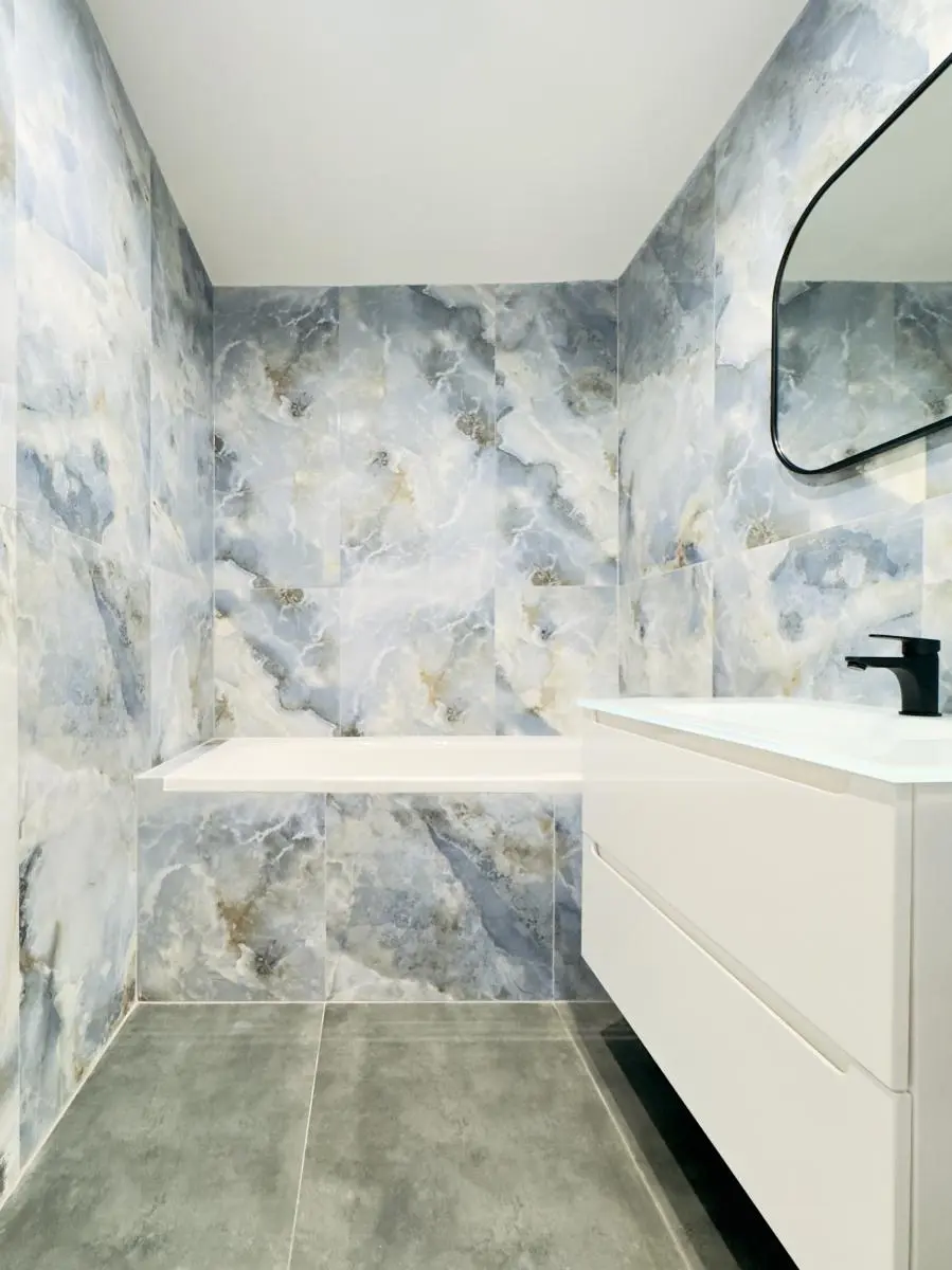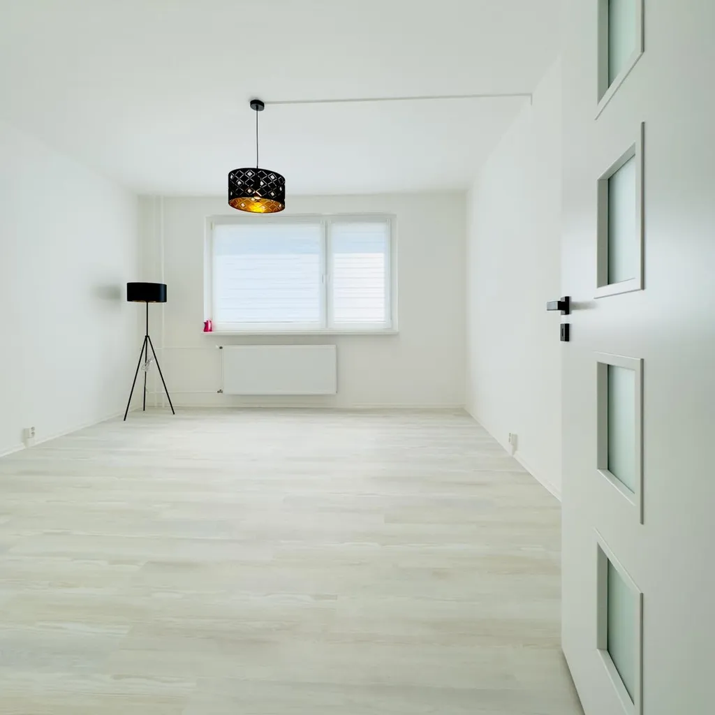 Interiér bytu se pyšní novými podlahami z vinylové krytiny položené na vyrovnávací stěrce, čerstvě vyštukovanými a vymalovanými stěnami. Koupelna je vybavena prostornou vanou, velkým umyvadlem a zrcadlem. Toaleta je oddělená od koupelny a je osazena moderním závěsným WC.
