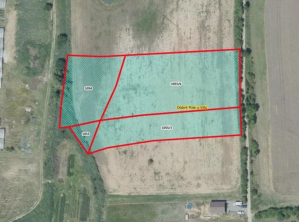 Exkluzivně nabízíme k prodeji soubor pozemků p.č. 1053, p.č. 1054, p.č. 1055/1 a p.č. 1055/6 o celkové výměře 12 495 m2 v k.ú. Dobré Pole u Vitic, vedené na LV 1474 ve výlučném vlastnictví (1/1). Jsou řádně obhospodařovány místním zemědělcem. Na pozemcích je možné hospodařit, případně ho v budoucnu směnit se Státním pozemkovým úřadem (SPÚ).