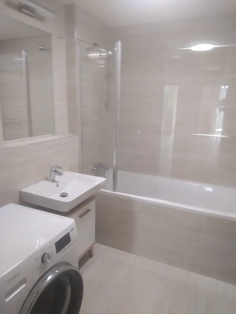 V jednotce je instalována kompletní kuchyňská linka od spol. Ikea se spotřebiči (el. trouba s el. indukční varnou sklokeramickou deskou, digestoří, myčkou a lednicí s mrazákem).